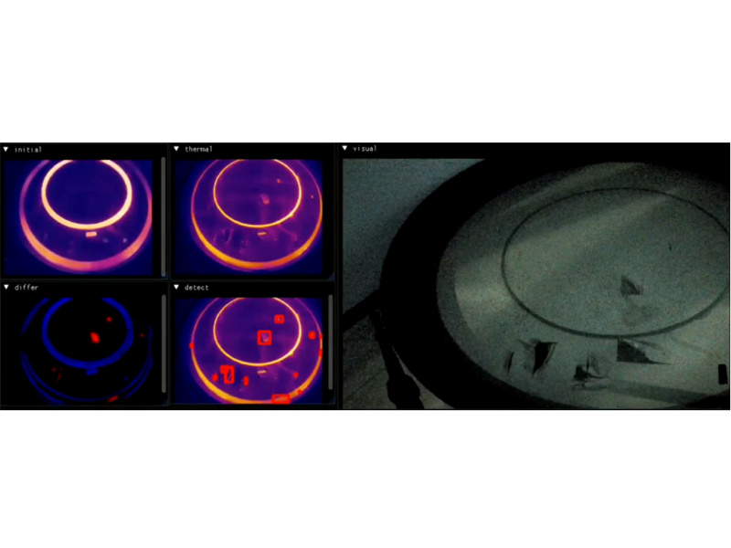 The infrared camera captures real-time images of the vibrating screen mesh, obtaining uniform thermal distribution images.
